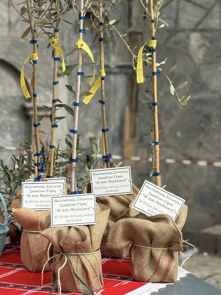 O Σκόπελος Γέρας υποδέχθηκε το Σάββατο 18 Οκτωβρίου 2025 την 1η Γιορτή Ελιάς με τίτλο «Το δέντρο που μας ενώνει», μια εκδήλωση αφιερωμένη στην ελιά – το δέντρο-σύμβολο της ειρήνης, της ζωής και της λεσβιακής ταυτότητας.