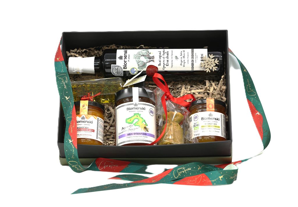 Η Biomeraki έχει τη χαρά να παρουσιάσει τα φετινά χειροποίητα, βιολογικά δώρα της, γεμάτα άρωμα, γεύση και αυθεντικότητα — ιδανικά για τις γιορτές. Κάθε δώρο είναι μια ευκαιρία να μοιραστείτε το μεράκι, την παράδοση και τον πλούτο της λεσβιακής γης, μέσα από προϊόντα φτιαγμένα αποκλειστικά από τη δική μας παραγωγή.