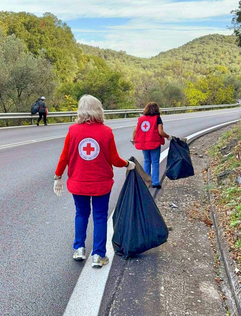 Μυτιλήνης του Ελληνικού Ερυθρού Σταυρού μαζί με την Κοινωνική Λειτουργό του Τμήματος κα. Μαρία Συμεού, πραγματοποίησαν το Σάββατο 25 Οκτωβρίου 2025 εθελοντική δράση για τον καθαρισμό από απορρίμματα σε τμήμα της επαρχιακής οδού Κεραμειά – Αγιάσος.