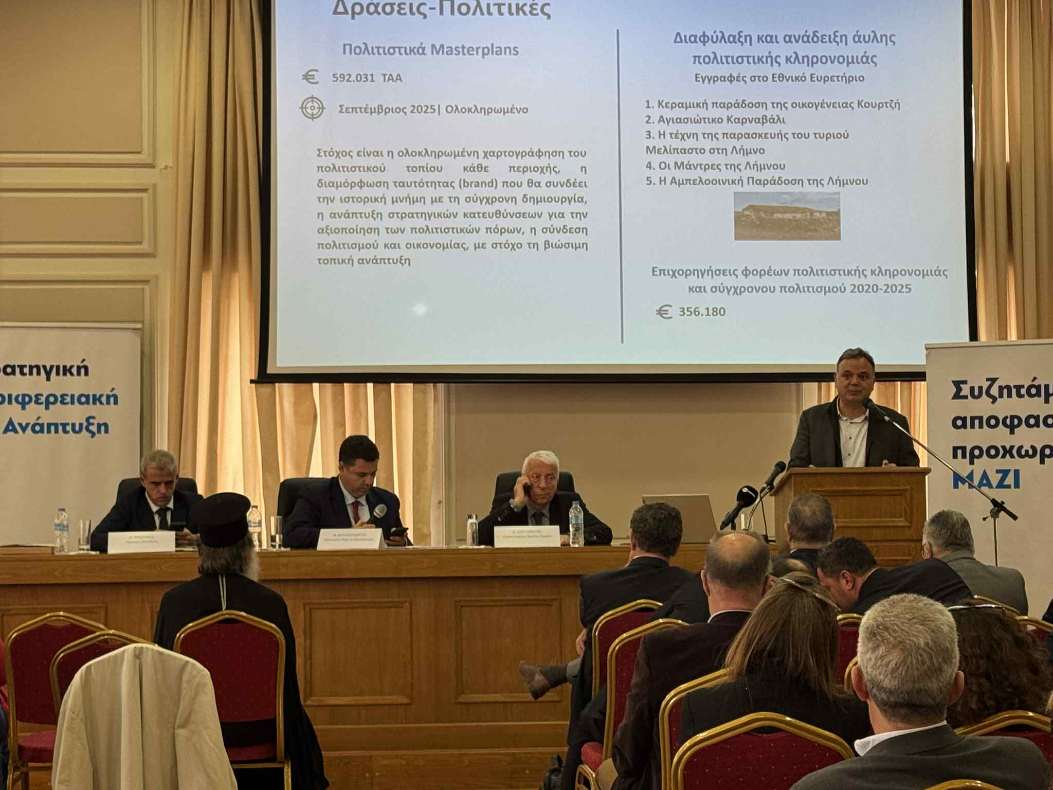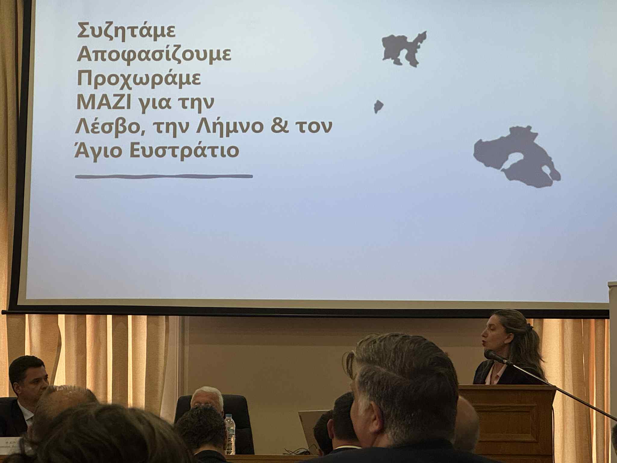 Στη Λέσβο βρέθηκε πολυμελές κυβερνητικό κλιμάκιο για την παρουσίαση του Τοπικού Σχεδίου Ανάπτυξης — Στο επίκεντρο υποδομές, δημογραφικό, ύδρευση και στήριξη των νησιωτικών κοινωνιών.