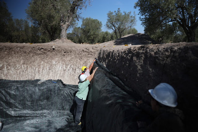 Κ. Γαλανίδου, το σημείο ανασκάπτεται ήδη 14 χρόνια, για εμάς που δεν γνωρίζουμε, πόσο διαρκεί συνήθως μια ανασκαφή; Μπορείτε να προβλέψετε για πόσο καιρό ακόμα θα διαρκέσει η ανασκαφή στα Ροδαφνίδια; ρωτώ και η κ. Γαλανίδου μου απαντά: «Τα Ροδαφνίδια, ένας μαγικός χαμηλός λόφος με τον ελαιώνα του, είναι μια τοποθεσία που περιλαμβάνει αρκετές αρχαιολογικές θέσεις. Για τη διερεύνησή τους αναπτύξαμε μια σύνθετη και πρωτότυπη στρατηγική δειγματοληψίας. Μέχρι στιγμής έχουμε σκάψει μέχρι το στέρεο – στείρο στρώμα δύο αρχαιολογικές θέσεις στον νότιο τομέα και τα τελευταία χρόνια διερευνούμε το κατώτερο στρώμα σε ένα βαθύ και απαιτητικό όρυγμα στον βόρειο τομέα. Η ομορφιά της αρχαιολογικής έρευνας έγκειται στο απρόσμενο. Δεν γνωρίζουμε σε τι βάθος πρέπει να φθάσουμε για να βρούμε εδώ το στείρο στρώμα, επομένως είναι δύσκολο να σας απαντήσω. Πρόθεσή μου είναι να ολοκληρώσω τη διερεύνηση μίας τουλάχιστον ακόμα αρχαιολογικής θέσης στον βόρειο τομέα των Ροδαφνιδίων. Έχουμε, επίσης, διερευνήσει τη στρωματογραφία περισσοτέρων από 45 γεωαρχαιολογικών ορυγμάτων σε μια μεγάλη έκταση από το χωριό Λισβόρι μέχρι τις θερμοπηγές του. Η δουλειά μας θυμίζει κάπως τον μαγνητικό τομογράφο που κάνει λεπτές τομές και προσφέρει μια καλή εικόνα της περιοχής ενδιαφέροντος. Εξάλλου έχουμε να κάνουμε με νομαδικούς πληθυσμούς χωρίς μόνιμα αρχιτεκτονικά κατάλοιπα που μετακινούνται συνεχώς. Για εκείνους τόπος και πατρίδα ήταν κάτι διαφορετικό από ότι για τους εδραίους πληθυσμούς της προϊστορίας ή των ιστορικών χρόνων».