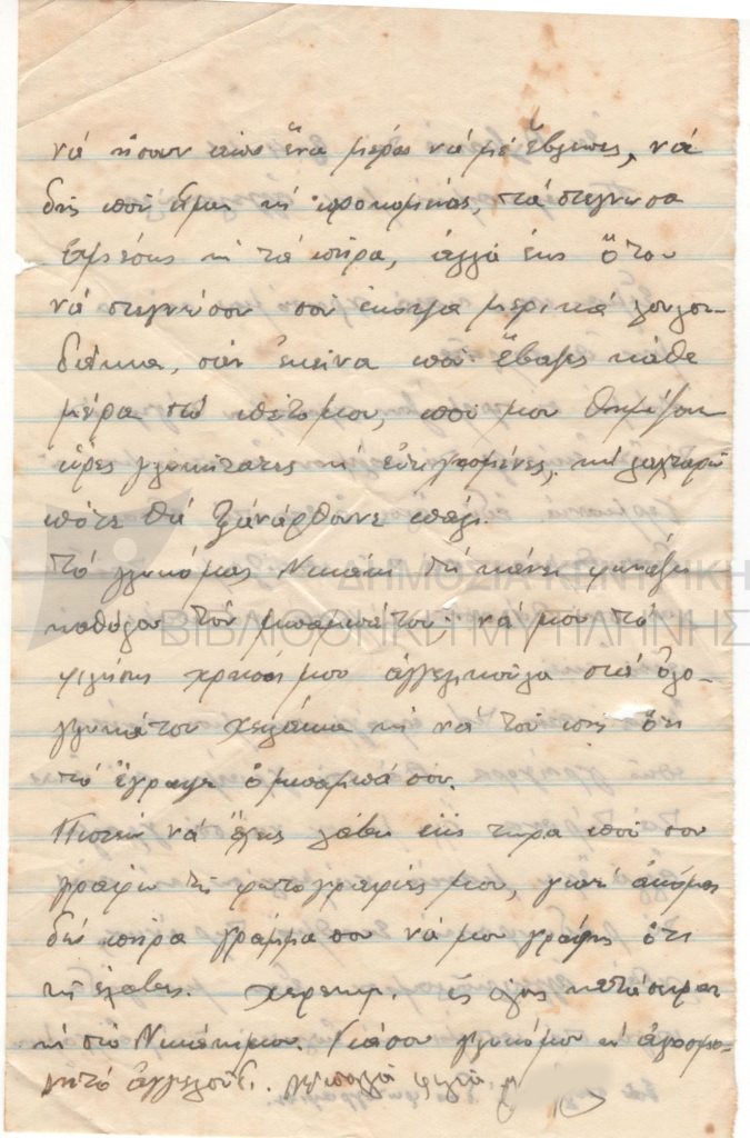 Πιστεύω να έχεις λάβει έως τώρα τις φωτογραφίες μου, γιατί ακόμα δεν πήρα γράμμα σου να μου γράφεις ότι τις έλαβες… στο Νικάκι μου.