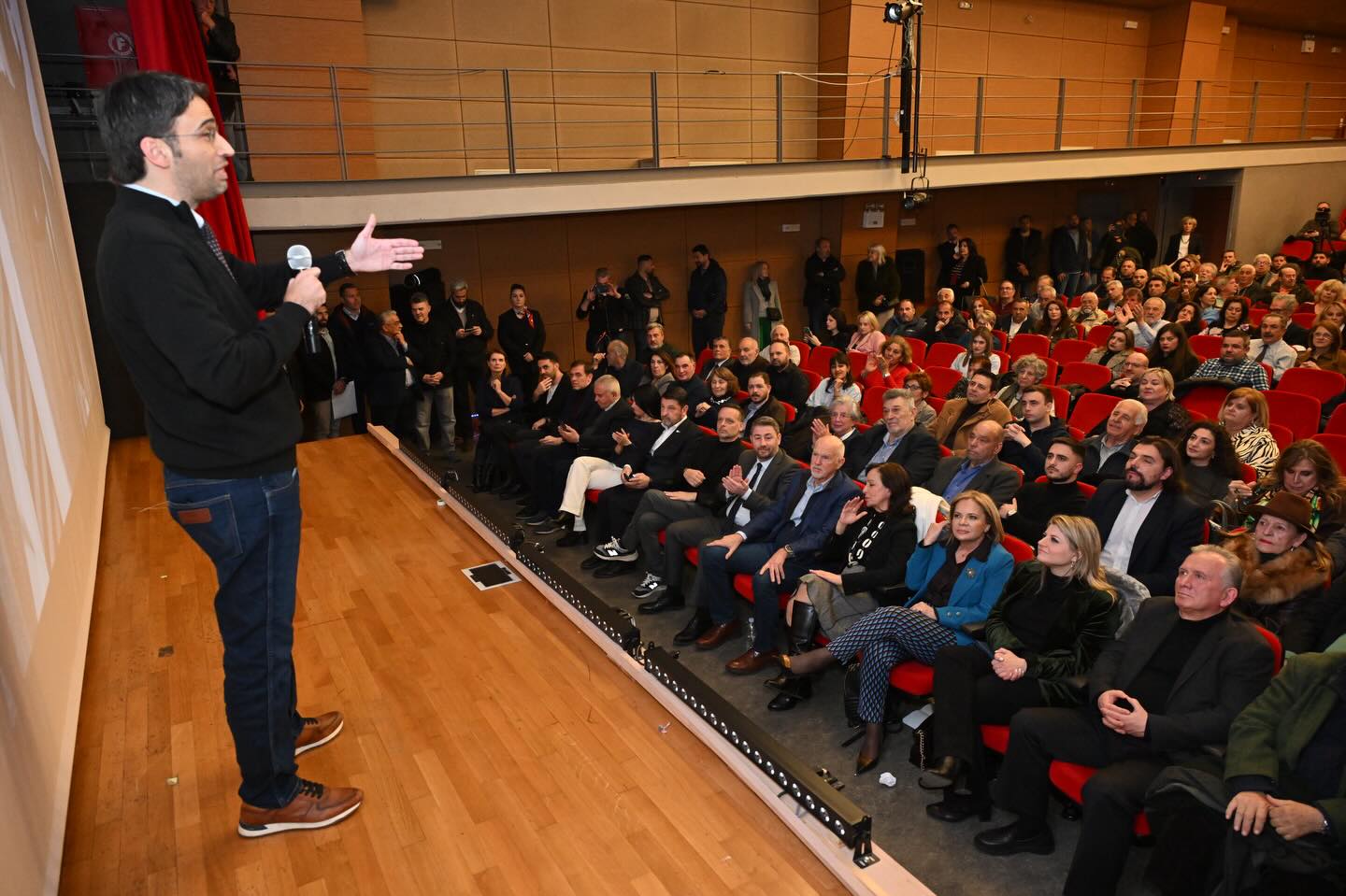Η αίθουσα ήταν κατάμεστη, ενώ το κοινό χειροκροτούσε διαρκώς, σε μια βραδιά που ανέδειξε τη διαχρονική επιρροή του Ανδρέα Παπανδρέου και τη σύνδεσή του με την πολιτική ιστορία της χώρας.