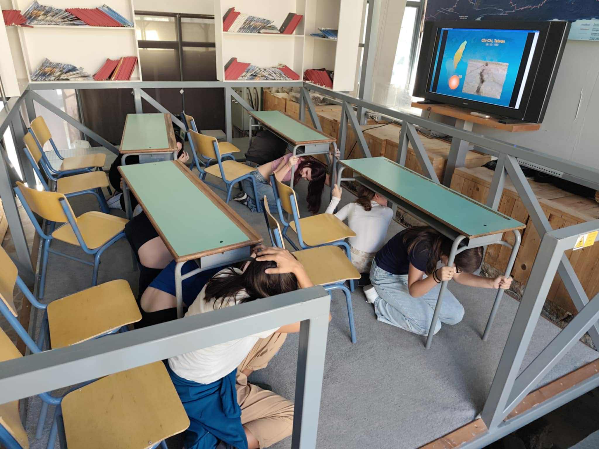 σε δραστηριότητα προσομοίωσης σεισμών στη σεισμική τράπεζα του Μουσείου. Οι