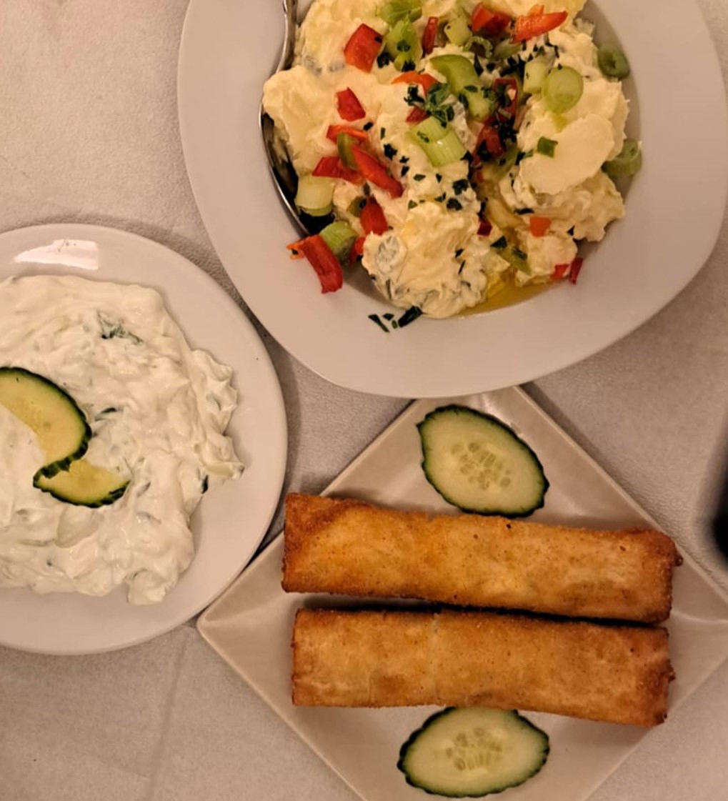 Από τα ορεκτικά ξεχωρίζει η πατατοσαλάτα, σε γενναία μερίδα, αλλά και τα μπουρεκάκια με γαρίδα, τραγανά και ισορροπημένα. Η βραστή σαλάτα έρχεται με τα λαχανικά σωστά βρασμένα, κάτι που δεν είναι πάντα αυτονόητο και εδώ γίνεται με ακρίβεια.