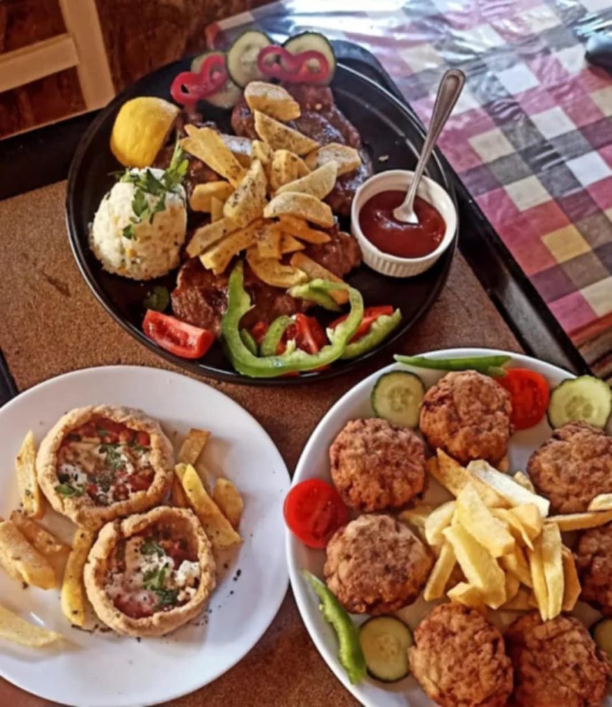 Τα υπόλοιπα πιάτα συμπληρώνουν την εικόνα χωρίς να τη βαραίνουν, κόκκορας κρασάτος με χειροποίητες χυλοπίτες ή πιλάφι, χοιρινό στο φούρνο με δαμάσκηνο, πίτες — παστουρμαδόπιτες και μανιταρόπιτες — με φύλλο λεπτό, τραγανό, που σπάει όπως πρέπει.