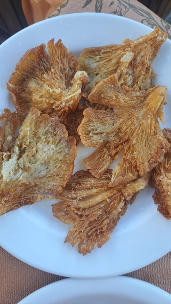 Η φάβα από κουκιά έρχεται με κρεμμυδάκι και μπόλικο λάδι να ισορροπήσει τη γλύκα της. Τα αφρόψαρα σιγοτηγανίζονται ώσπου να πάρουν τη σωστή τραγανότητα, ενώ στο πιάτο μπορούν να βρεθούν και οι «guest star» μεζέδες — ό,τι βρέθηκε φρέσκο στην αγορά εκείνο το πρωί.
