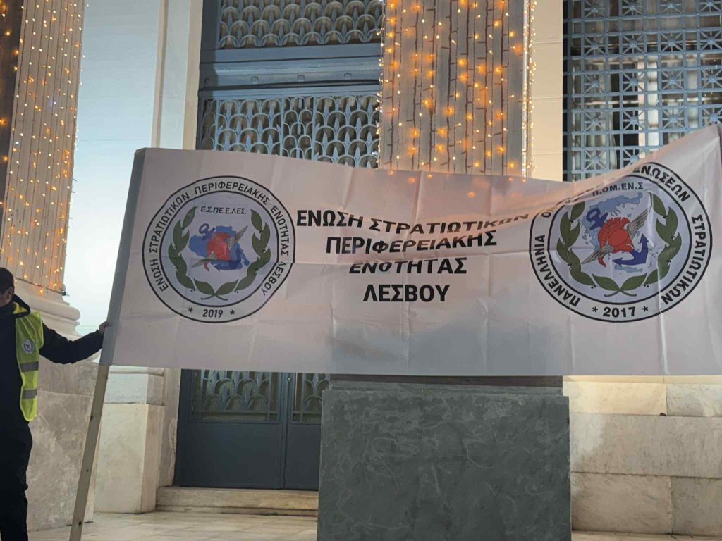 Σε συμβολική συγκέντρωση διαμαρτυρίας προχώρησαν το απόγευμα της Πέμπτης 8 Ιανουαρίου οι στρατιωτικοί της Λέσβου, ανταποκρινόμενοι στο κάλεσμα της Ένωση Στρατιωτικών Περιφερειακής Ενότητας Λέσβου. Η κινητοποίηση πραγματοποιήθηκε στις 18:00, έξω από την Περιφέρεια Βορείου Αιγαίου και εντάχθηκε στο πλαίσιο πανελλαδικών δράσεων που εξελίχθηκαν ταυτόχρονα σε δεκάδες σημεία της χώρας.