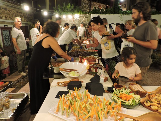Αμυγδαλωτά, χάχλες, χυλοπίτες και κριθαράκι αλλά και πολλά άλλα παραδοσιακά πιάτα δοκίμασαν στη μεγάλη γιορτή που στήθηκε στον πανέμορφο χώρο απέναντι από τη Δημοτική Πινακοθήκη του Μολύβου. Καθοδηγούμενοι από τα κορίτσια του χωριού, τα γκρουπ των επισκεπτών ξεκινώντας από την ΒΑ πύλη «μπαρμάκα» του οικισμού, ανεβαίνοντας στο βορινό μεγάλο καλντερίμι που διασχίζει την παλιά χριστιανική συνοικία του Μολύβου και οδηγεί στην αγορά έζησαν μια πρωτόγνωρη εμπειρία. Οι αυλές άνοιξαν όπως και οι καρδιές των ανθρώπων που πήραν μια γεύση Λέσβου…Και έτσι με αυτόν το νοστιμο τρόπο ένας μεγάλος έρωτας ξεκίνησε!