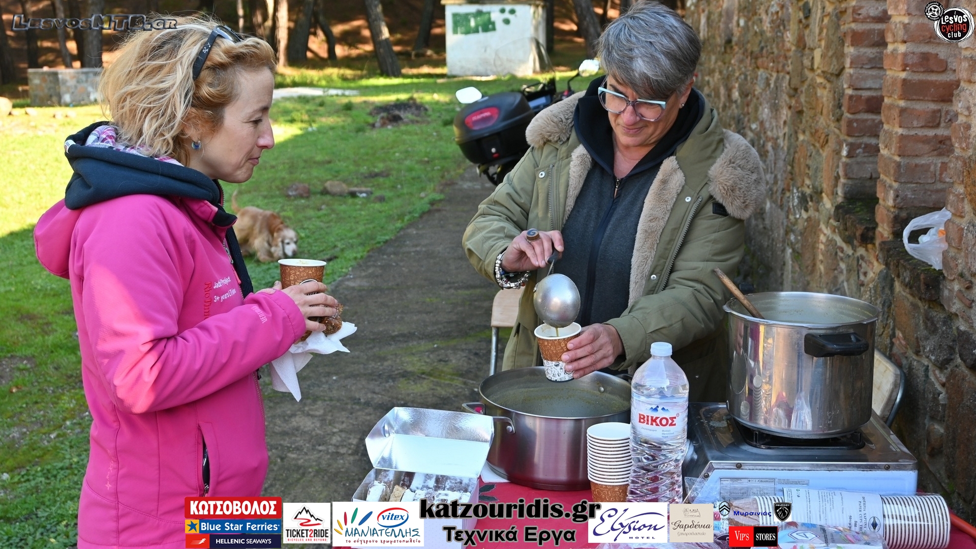 Κουραμπιέδες, μελομακάρονα και το πασίγνωστο πλέον μαγικό τσάι του Γενικού Γραμματέα του Πο. Συ. Λέσβου, Μπάμπη Αράπη, κεράστηκαν στους παρευρισκόμενους, άφθονες γλυκές και αλμυρές λιχουδιές, από το σύλλογο των Lesvos Runners, ενώ η Ιουλία και το Lesvos Ride προσέφεραν στο κοινό, ζεστή σούπα.