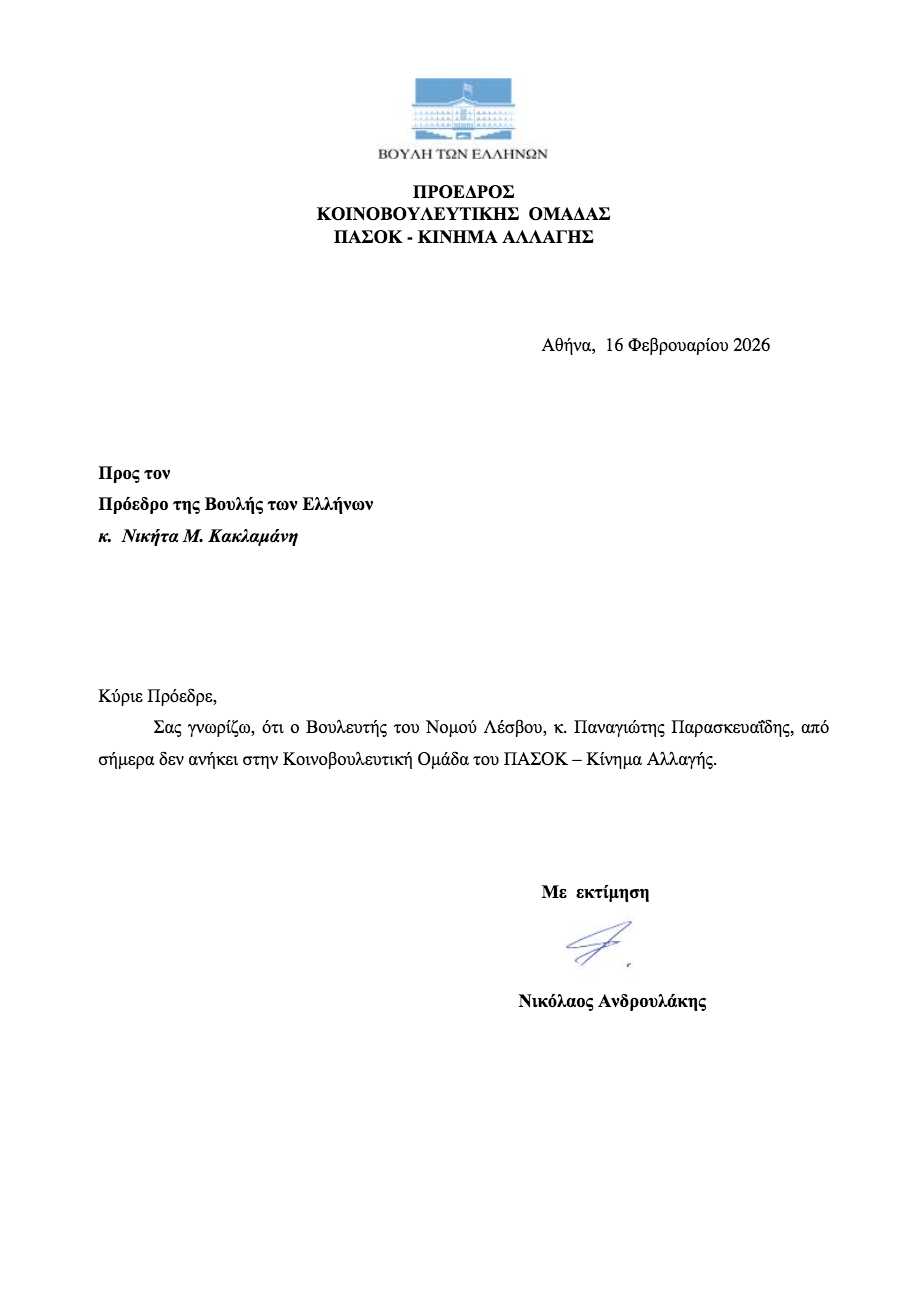 Η επιστολή του Προέδρου του ΠΑΣΟΚ προς τον Πρόεδρο της Βουλής