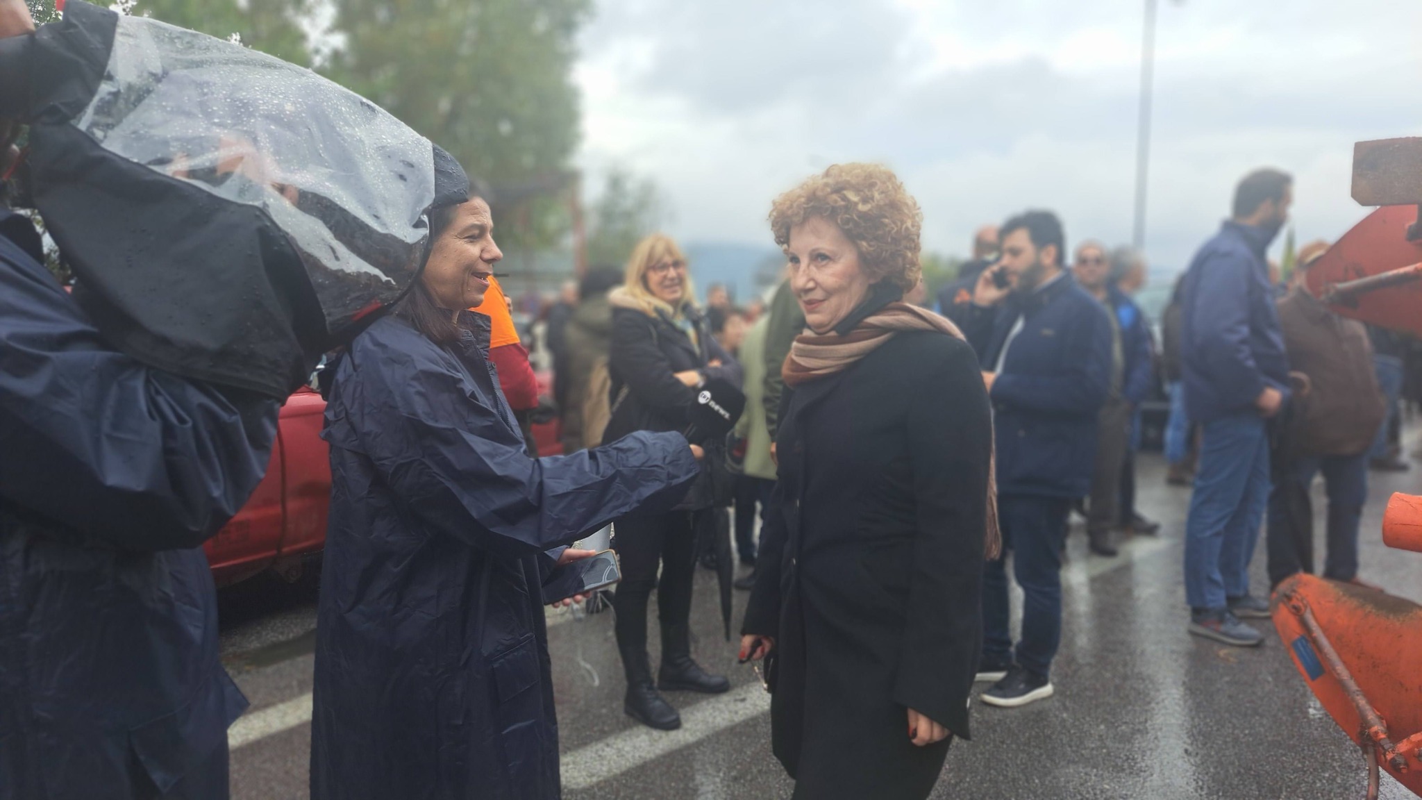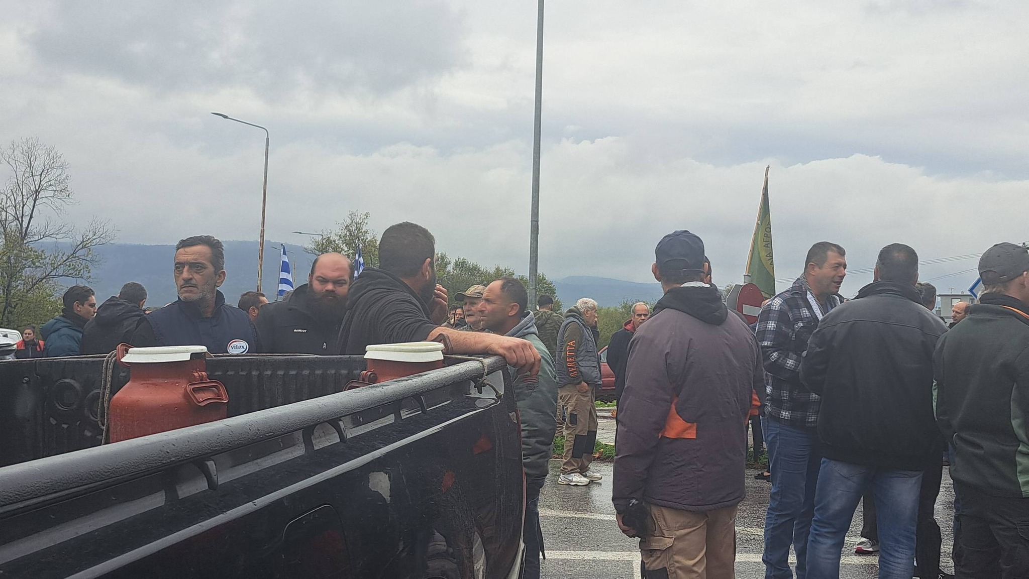 Παρά τη βροχή με την οποία ξεκίνησε το συλλαλητήριο, η συμμετοχή ενισχύεται συνεχώς από παραγωγούς που φτάνουν από άλλες περιοχές της Λέσβου, δίνοντας στις κινητοποιήσεις χαρακτήρα μαζικό και αποφασιστικό.
