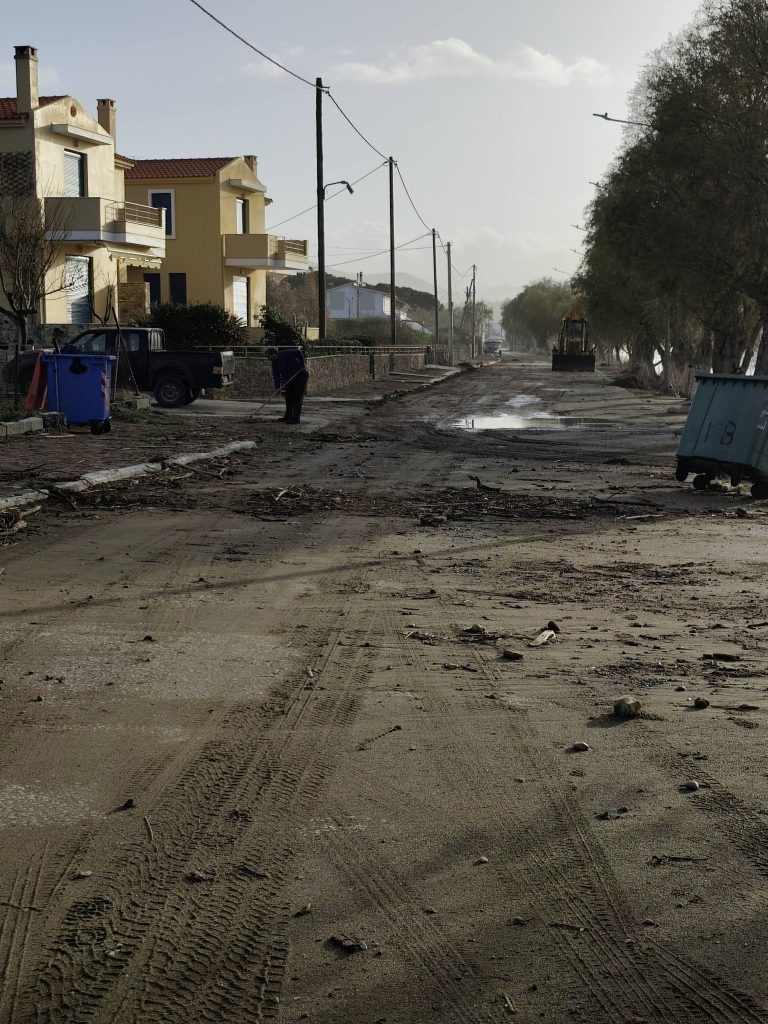 Σε διαδικασία αποκατάστασης των ζημιών από τη χθεσινή κακοκαιρία βρίσκονται η Σκάλα Καλλονής και τα Βατερά, μετά τους ισχυρούς νοτιάδες που προκάλεσαν πλημμυρικά φαινόμενα και εκτεταμένες φθορές. Από νωρίς το πρωί, συνεργεία του Δήμου Δυτικής Λέσβου και της Περιφέρειας Βορείου Αιγαίου επιχειρούν στις παραλιακές ζώνες για την απομάκρυνση φερτών υλικών και συσσωρευμένων νερών.