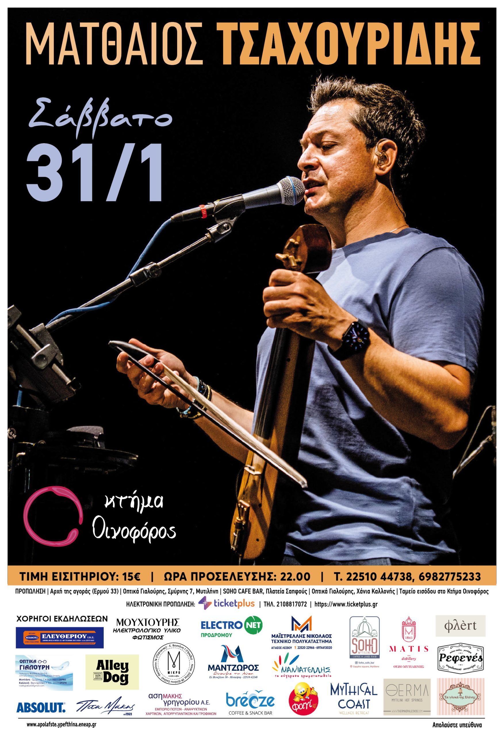 Κοινωνία Ο Ματθαίος Τσαχουρίδης ζωντανά στη Μυτιλήνη – Μουσικό ταξίδι στο Κτήμα Οινοφόρος στις 31 Ιανουαρίου 23/01/2026 2:01 μμ