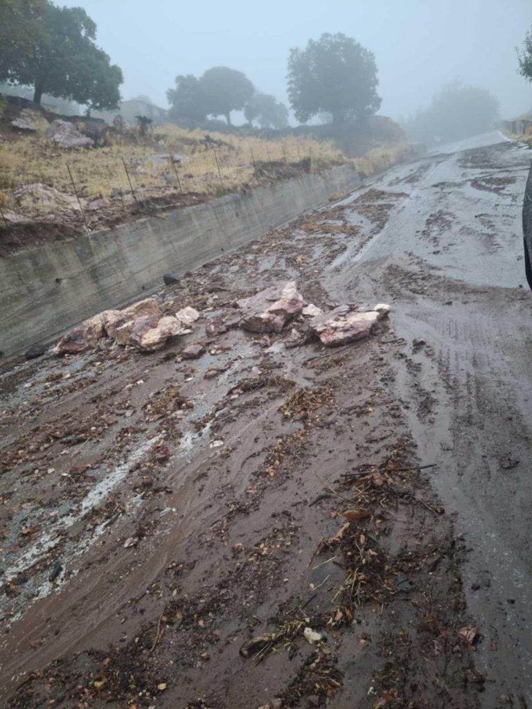 Στο δρόμο προς τη Μελίντα σημειώθηκαν καταπτώσεις βράχων, ενώ στον δρόμο Άντισσας – Καλλονής πέτρες έπεσαν σε στροφές, δημιουργώντας κινδύνους για τα διερχόμενα οχήματα.