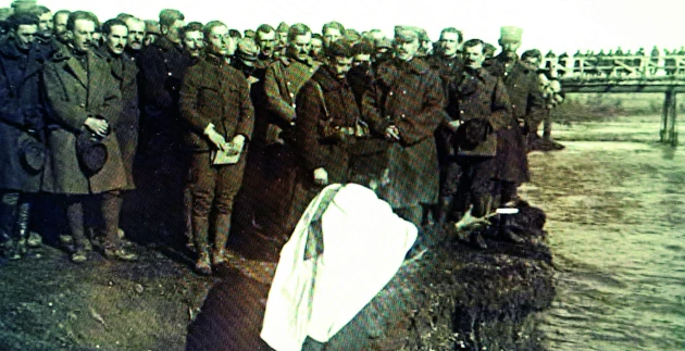 Η παραπάνω φωτογραφία είναι τραβηγμένη στις 6 Ιανουαρίου 1922 και δείχνει τον αγιασμό των υδάτων στον ποταμό Μπανάζ, δηλαδή στον αρχαίο Πανάσιον της Φρυγίας. Ο ποταμός καταλήγει λίγο πιο κάτω στον ποταμό Μαίανδρο. Διακρίνεται το Επιτελείο της Ανεξάρτητης Μεραρχίας μαζί με στρατιώτες της ΙΧ Μεραρχίας, ενδεχομένως.