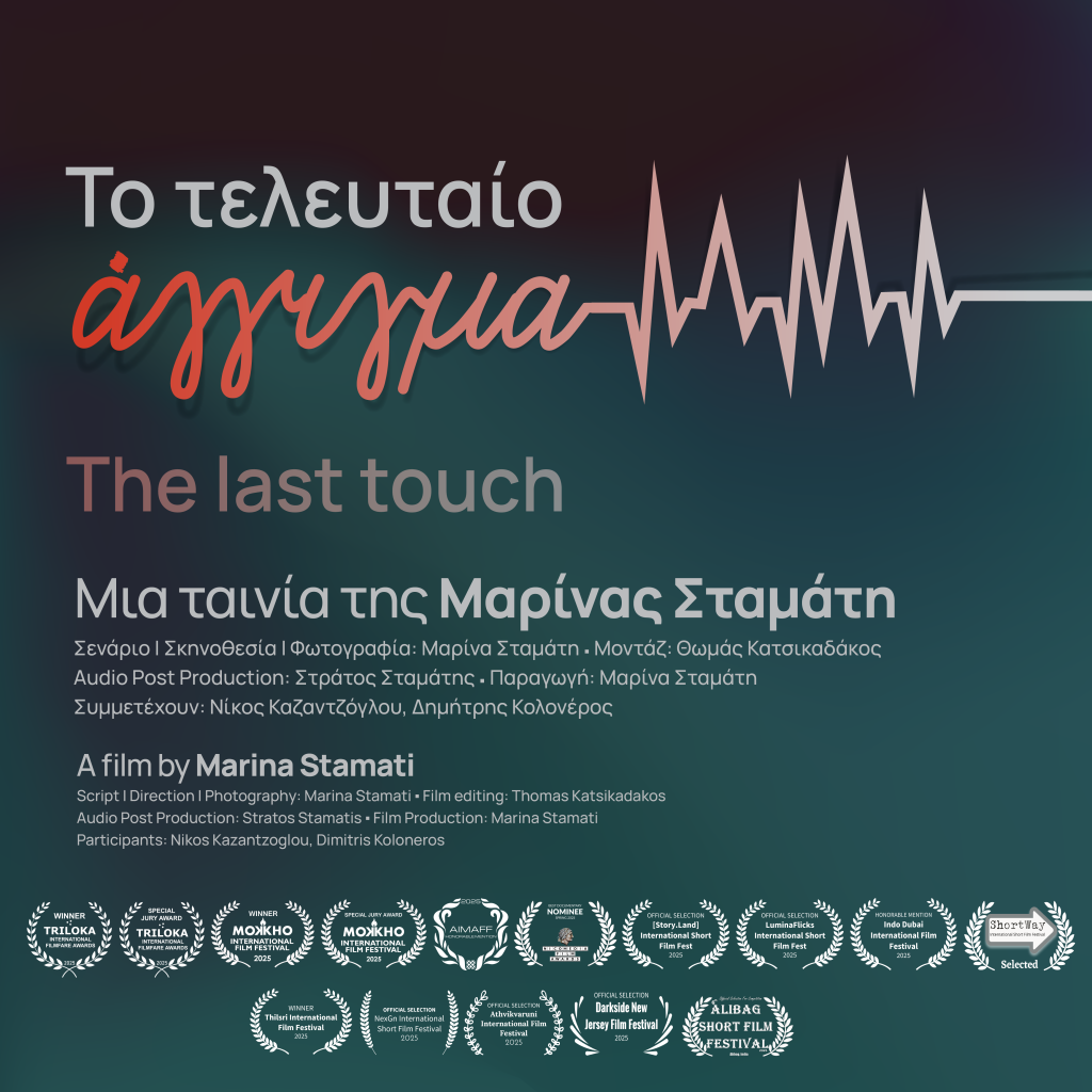 Η ταινία «Το Τελευταίο Άγγιγμα» (The Last Touch) της Μυτιληνιάς δημιουργού Μαρίνας Σταμάτη συνεχίζει το επιτυχημένο ταξίδι της στα διεθνή φεστιβάλ και αυτή τη φορά θα προβληθεί στο πλαίσιο του Διεθνούς Φεστιβάλ Κινηματογράφου “Anatomy: Crime and Horror International Film Festival”, που θα πραγματοποιηθεί στον Φιλοπρόοδο Όμιλο Υμηττού (Φ.Ο.Υ.) από τις 29 Οκτωβρίου έως την 1η Νοεμβρίου 2025.